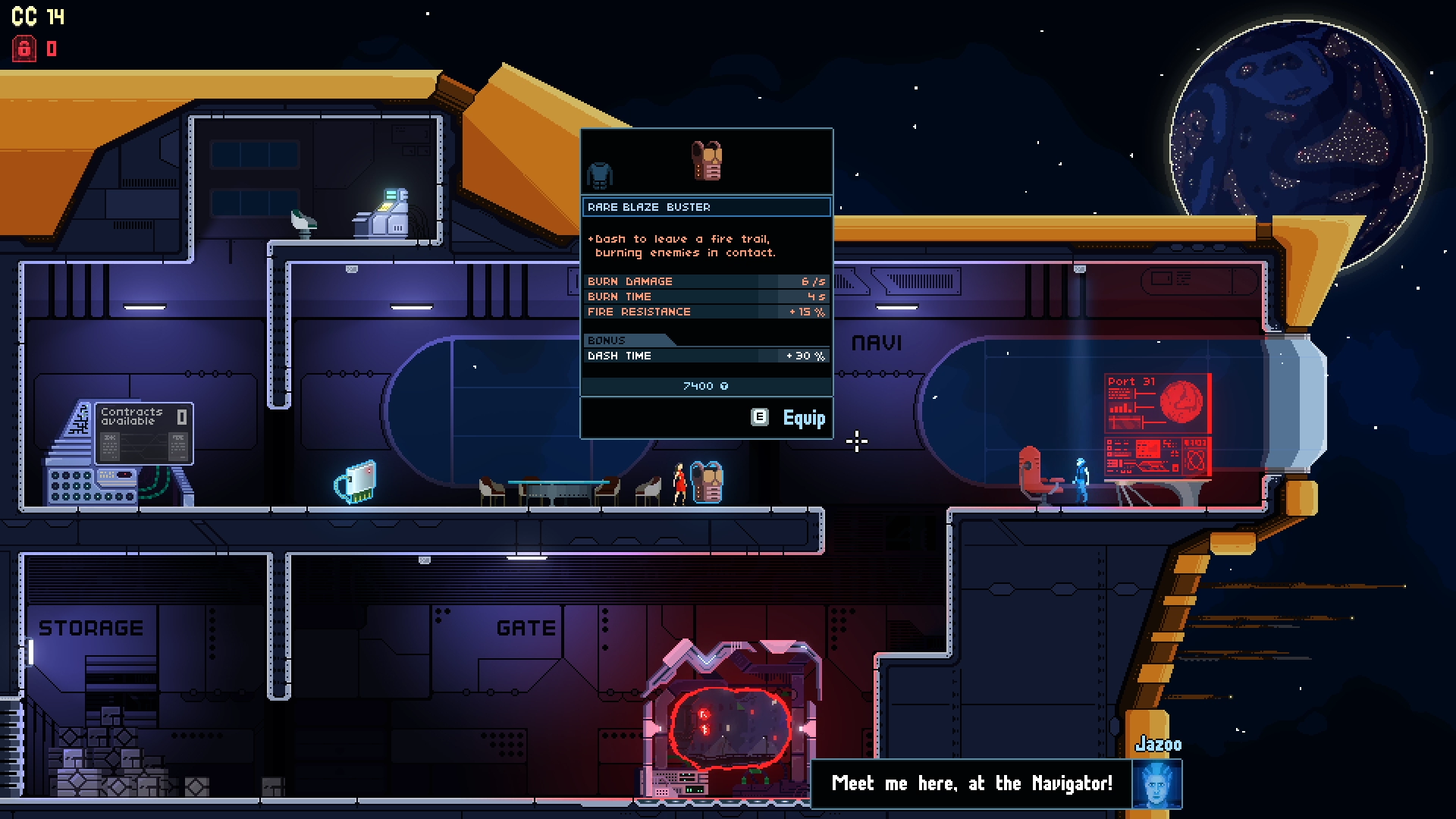 Use the console in your ship to unlock new items or permanent upgrades to boost your fighting chances in the next run.
